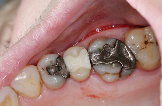 Bei etwas größeren Defekten ist somit eine Kunststofffüllung nicht mehr ratsam. In diesen Fällen sollte ein Inlay bzw. Teilkrone die Versorgung der ersten Wahl sein. Dafür muss der Zahn in einer speziellen Form beschliffen werden, und es wird dann für genau diesen Defekt ein passender Füllkörper im Labor hergestellt. Dieser (Inlay oder Teilkrone) wird dann entweder mit einem Zement oder Kunststoff eingesetzt. Dabei wird genauso wenig von dem Kunststoff (Zement) benötigt wie oben beschrieben bei dem "kleinen Loch". Somit ist der Zahn für sehr lange Zeit keimdicht.